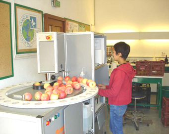 SudExpé dispose également d’une calibreuse Optiscan MAF Rhoda qui permet le calibrage et la répartition des fruits en six classes de poids et six classes de coloration (intensité et pourcentage de surface colorée).